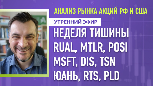 Анализ рынка акций РФ и США/ Неделя тишины, RUAL, MTLR, POSI, MSFT, DIS, TSN/ ЮАНЬ, RTS, PLD