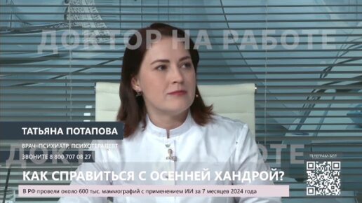 Почему осенью грустно? Татьяна Потапова, врач-психиатр, психотерапевт ФГБУ "ОБП" в программе "Доктор".