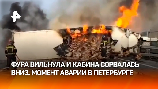 Момент аварии с фурой в Петербурге. Кабина падает на ж/д пути — кадры очевидцев