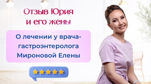 Отзыв Юрия и его жены о лечении у врача-гастроэнтеролога Мироновой Елены. Лечился и наблюдался Юрий, которого привела жена.