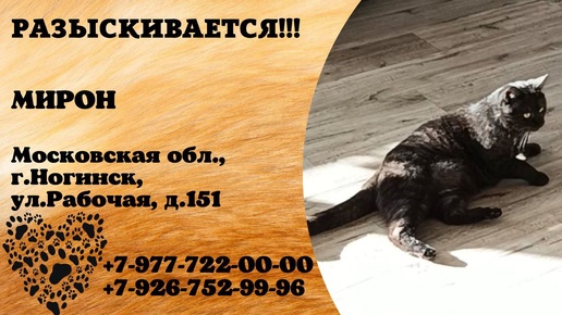 Пропал кот! МИРОН. Московская обл, г. Ногинск