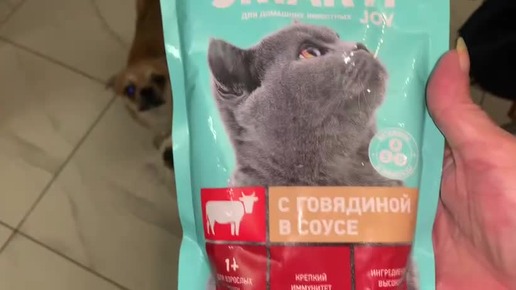 Попробовали очень бюджетный, влажный корм.