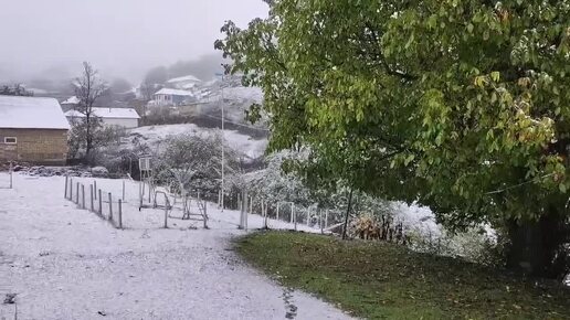 В селе Рваруд Лерикского района Азербайджана идет снег.