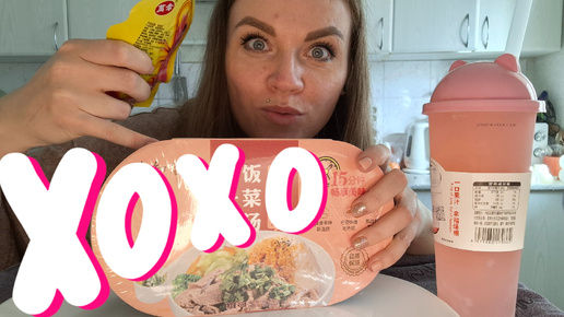 Мукбанг саморазогревающаяся еда, рис с соусом, соевое мясо в виде креветок, напиток с кусочками алоэ персиковый #мукбанг #еда #фудблогер