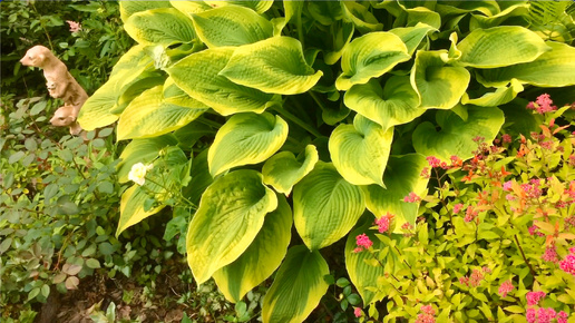 Сочетание многолетних растений, хвойных и лиственных кустарников. ОБЗОР РАСТЕНИЙ В КЛУМБЕ ПЕРЕД КРЫЛЬЦОМ. ИЮЛЬ. Видео из архива 2020г.