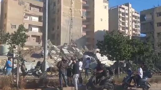 Площадь Тайюни в ливанской столице, где в результате израильской атаки обрушился многоэтажный дом, повреждены соседние здания
