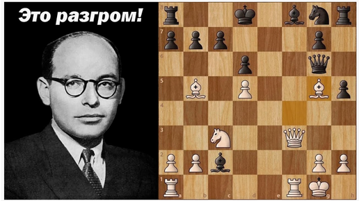 Давид Бронштейн (белые) устраивает неотвратимую атаку Владасу Микенасу и ставит мат в классной партии. Латышский гамбит, атака Бронштейна
