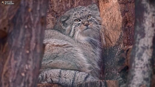 Манул Шу медленно засыпает. Ленинградский зоопарк