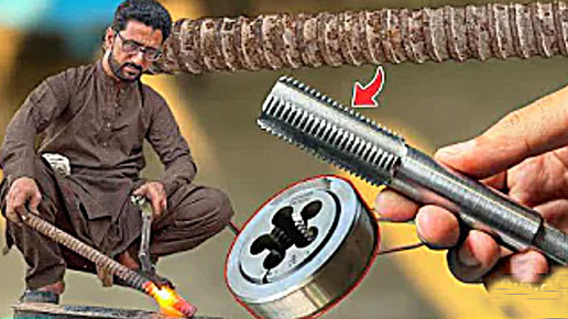 Я сделал резьбовое сверло из жесткого вала и круглую плашку из пружины.