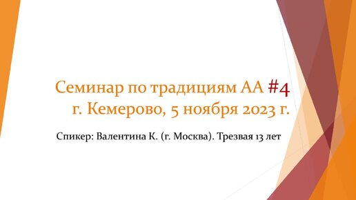 Семинар по традициям АА #4 / Валентина К. (г. Москва)