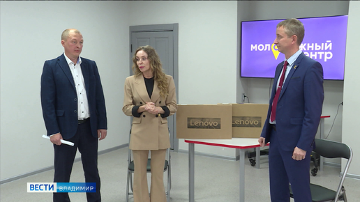 Представители Кольчугинского завода Электрокабель вручают современные ноутбуки Молодежному центру Владимира