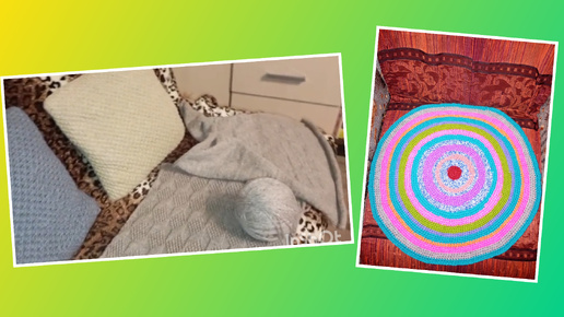 Довязала коврик и основную часть свитера . В гостях у подруги . Её вязание 😍