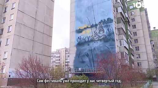 В Челябинске на фасаде дома у озера изобразили котов-рыбаков
