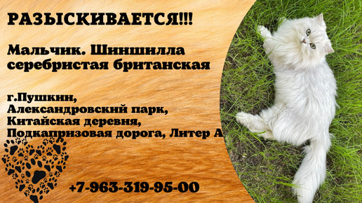 Пропал кот! Мальчик. Шиншилла серебристая британская. г.Пушкин, Александровский парк.