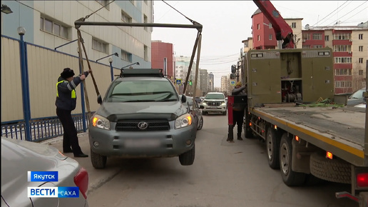 Работает эвакуатор. В Якутске для борьбы с неправильной парковкой проводят рейды сотрудники ГАИ