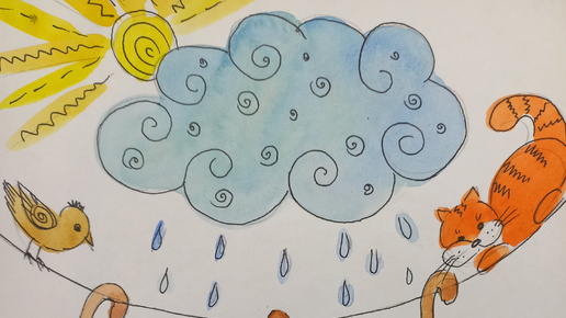 Зонтики🌂 Рисуем с детьми акварелью