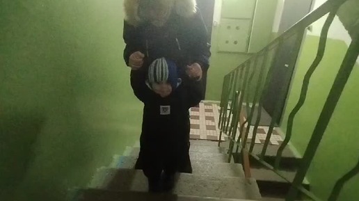 Марк сам первый раз поднимается по ступенькам и ему это очень нравится)).