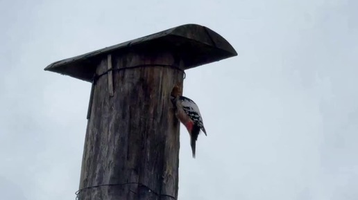 Дятел решил расширить вход в скворечник в Камне-на-Оби.