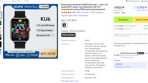 KUMI U6 - часы с GPS и внутренней памятью (музыка, диктофон) и подключением гарнитуры и ChatGPT