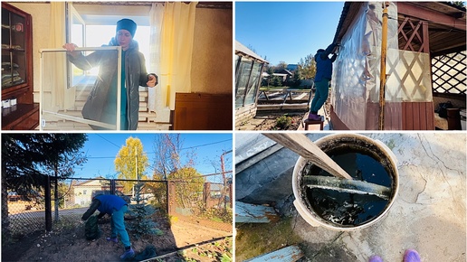12 октября. Укрываю беседку и туи. Сняла москитные сетки в доме