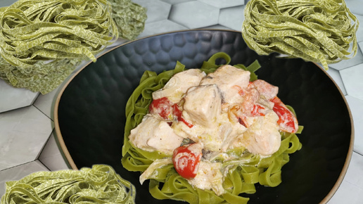 РАЗНОЦВЕТНАЯ еда. ЗЕЛЕНАЯ яичная паста с лососем. #паста