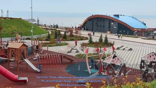 Проход по лестнице с зоны парковки , на детскую площадку . На набережной повесили кормушку для птиц и белок