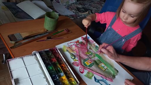 В мастерской художника. Рисование акварелью с ребенком 3 лет. Теремок