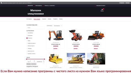 Интернет-магазин строительной спецтехники. Программа на PHP 5.x. + база данных MySQL. Курсовая работа