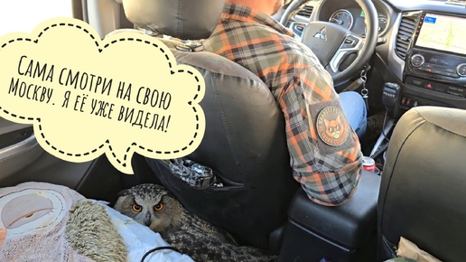 Сова Ёль очень недовольна поездкой по Москве. Пришлось лезть под сиденье, чтобы сильно не качало