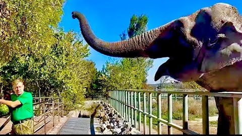 Посмотрите как наши улыбающиеся слонихи Магда и Джени лопают арбузы за обе щеки!АРХИВ.