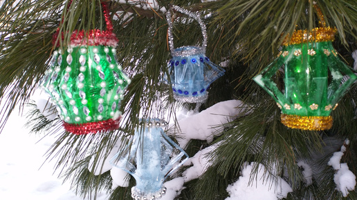 Фонарики из пластиковой бутылки Уличное Новогоднее украшение Поделка игрушка на елку для улицы