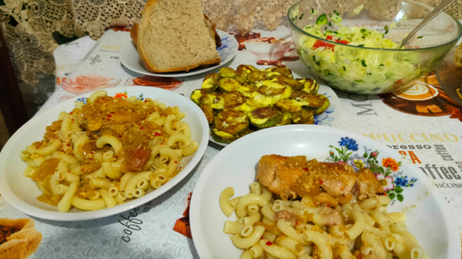 Кролик в сметанно-чесночном соусе. Убралась в саду. Наш ужин.