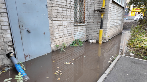 На Южном проезде, 224 прорыв водопровода — поток горячей воды топит дом. В этом месте все лето меняли полностью трубы.