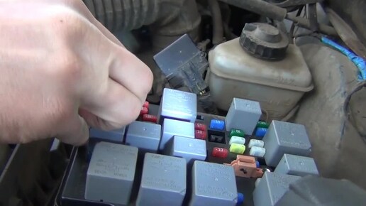 Замена предохранителя правых габаритных огней в монтажном блоке под капотом на KIA - Spectra