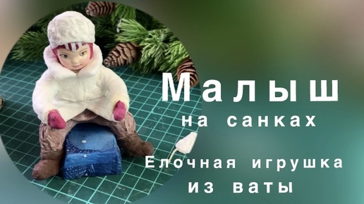 Делаем тулуп и шапку-ушанку для елочной игрушки из ваты. Малыш на санках. Часть 4