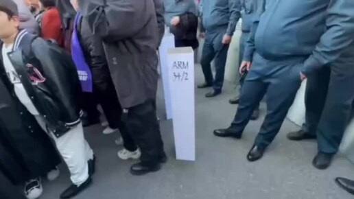 "Проснись, господин бездельник": протестующие принесли к резиденции президента Армении макет погранстолбов
