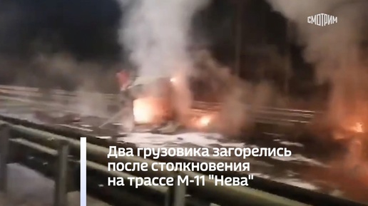 Два грузовика загорелись после столкновения на трассе М-11 "Нева"