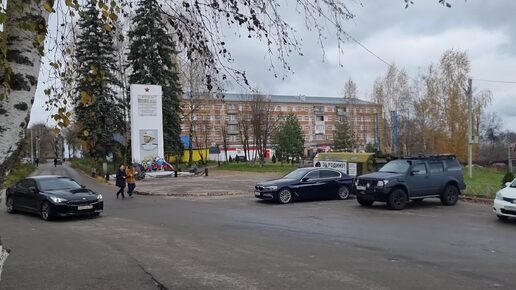 Центр города Струнино в Александровском районе Владимирской области. Центральная площадь, памятник, магазины и прочее.