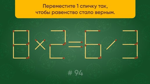 Задача со спичками № 94. Переместите 1 спичку так, чтобы равенство стало верным.
