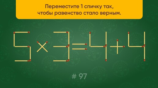 Задача со спичками № 97. Переместите 1 спичку так, чтобы равенство стало верным.