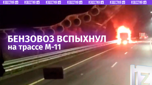 Бензовоз загорелся на М-11 — водителям приходится проезжать мимо столба пламени