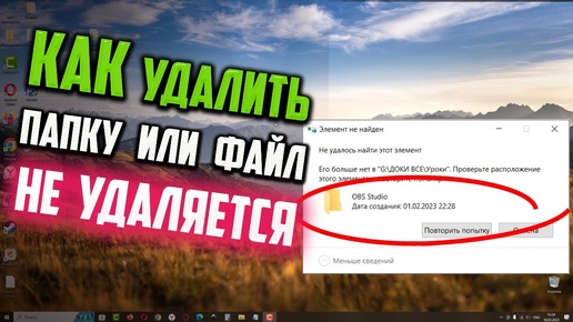 Как удалить папку, если пишет "Не удалось найти этот элемент" Windows 10