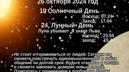 Рекомендации по солнечным и лунным 26 27 28 октября 2024г. Советы эзотерика