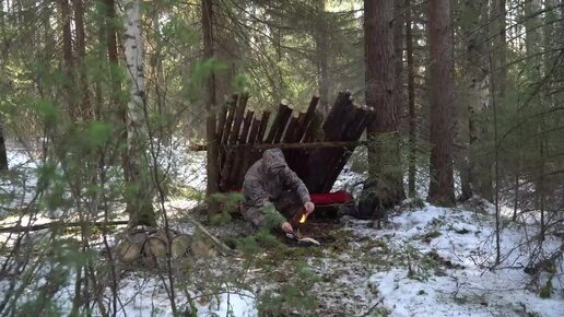 ПРЯТАТЬСЯ В БУШКРАФТОВОМ УКРЫТИИ, ВО ВРЕМЯ СНЕЖНОЙ БУРИ. ВЫЖИТЬ ПОД СНЕГОМ. ПОСТРОИЛ И ЗА НОЧЕВАЛ.