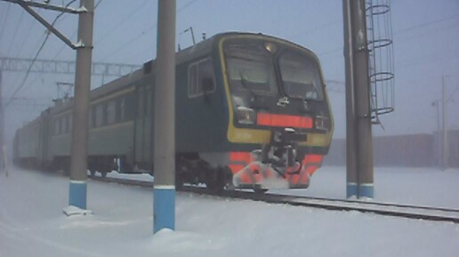 Электропоезд ЭД9М-0247 в окрасе Алтай. Демих в тумане.