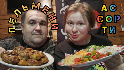 Пельмени в соевом, курица, морковь с чесноком, кеноа, салат летний, фасоль с перцем | Обжор не мукбанг