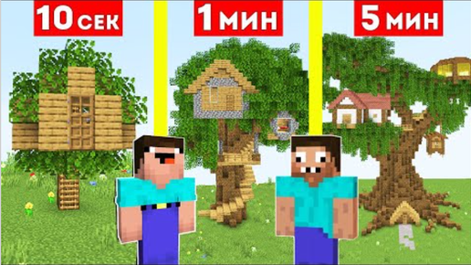 НУБ И ПРО СТРОЯТ ДОМ НА ДЕРЕВЕ ЗА 10 СЕКУНД / 1 МИНУТА / 5 МИНУТ В МАЙНКРАФТ БИТВА СТРОИТЕЛЕЙ