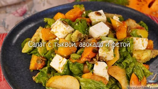 Аппетитная яркая еда. Салат с тыквой, авокадо и фетой