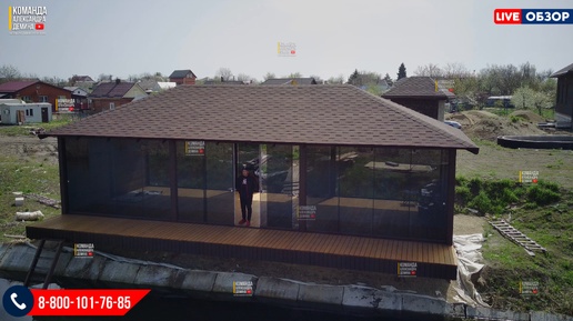 Безрамное остекление беседки у реки
