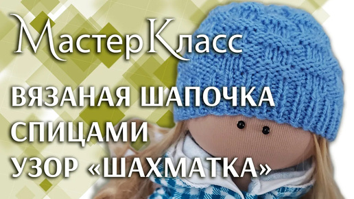 МК вязаная шапочка для куклы, узор "Шахматка" / Мастер-класс, вязание спицами